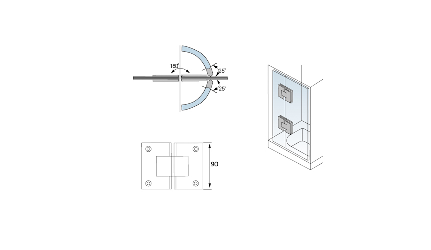 Glass Shower Hinge,Chamfer Edge 180°,Glass To Glass
