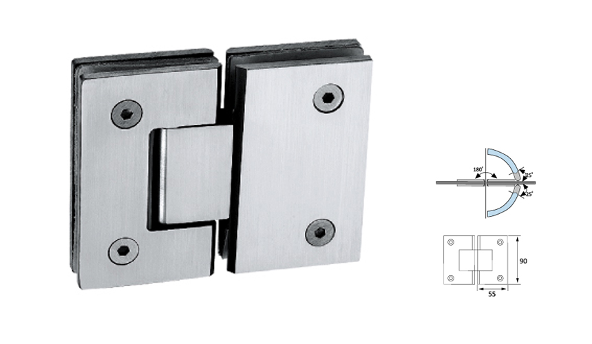 Glass Shower Hinge,Straight Edge 180°,Glass To Glass